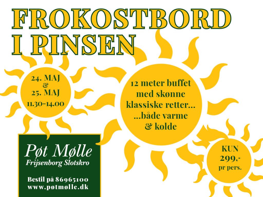 Midt i skovene omkring Frijsenborg slot finder du Pøt Mølle Slotskro. Omgivet af bakker, et rigt naturliv og historiens vingesus ligger den den gamle kornmølle, der sidenhen blev en vandmølle og som i dag er vores restaurant.